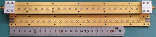 为了验证该22单元圆极化天线的正确性,利用标准的PCB制造工艺,在厚度为1.5748mm的Rogers 5880介质基片上(