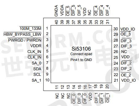 Si53106时钟缓冲器的 I/O电源电压值的范围为1.05~3.3V,具有50ps输出至输出偏斜,工作环境温度范围为-40~85℃,使其能适用于多种苛刻的环境中。同时其采用40引脚的QFN封装,体积小,结构紧凑。使用Silicon Labs PCIe时钟抖动工具可以快速简便地测量PCIe时钟抖动,广泛适用于服务器和数据中心中!
