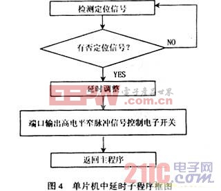 峰值检波最关键的问题就是要准确地捕捉信号的峰值,在该电路中是利用软件来实现的,其设计思想是以定位信号为参照,通过软件调整延时量来准确捕捉信号峰值。单片机中延时子程序的构成框图如图4所示。