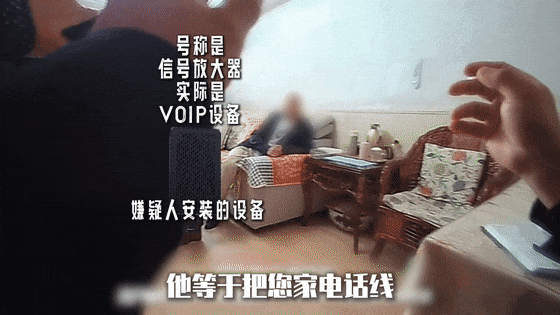 2024年5月,一名自称宽带公司客服的人员,以“检查宽带”为名,到北京朝阳区王大爷家里安装了所谓的“网络信号放大器”,实则是VOIP设备,后被警方抓获。