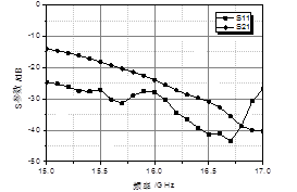= 2.2,tan=0.0009)制作了该天线是制作好的天线是天线的S参数测量结果。由于同轴和SIW的转接器会带来一定的反射,所以测量的S