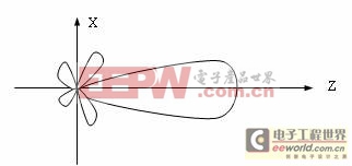 方向图反映了天线集中辐射能的情况。通常,方向图有许多叶瓣,最大辐射方向的叶瓣叫主瓣,其它叶瓣叫旁瓣(或付瓣)。主瓣宽度定义为当信号功率下降到最大辐射方向功率值的一半即-3dB)(即场强下降为最大值的0.707倍) 处,两点之间的夹角宽度。一般情况下,口径为D的向抛物面天线,其主瓣宽度可用下式估算: